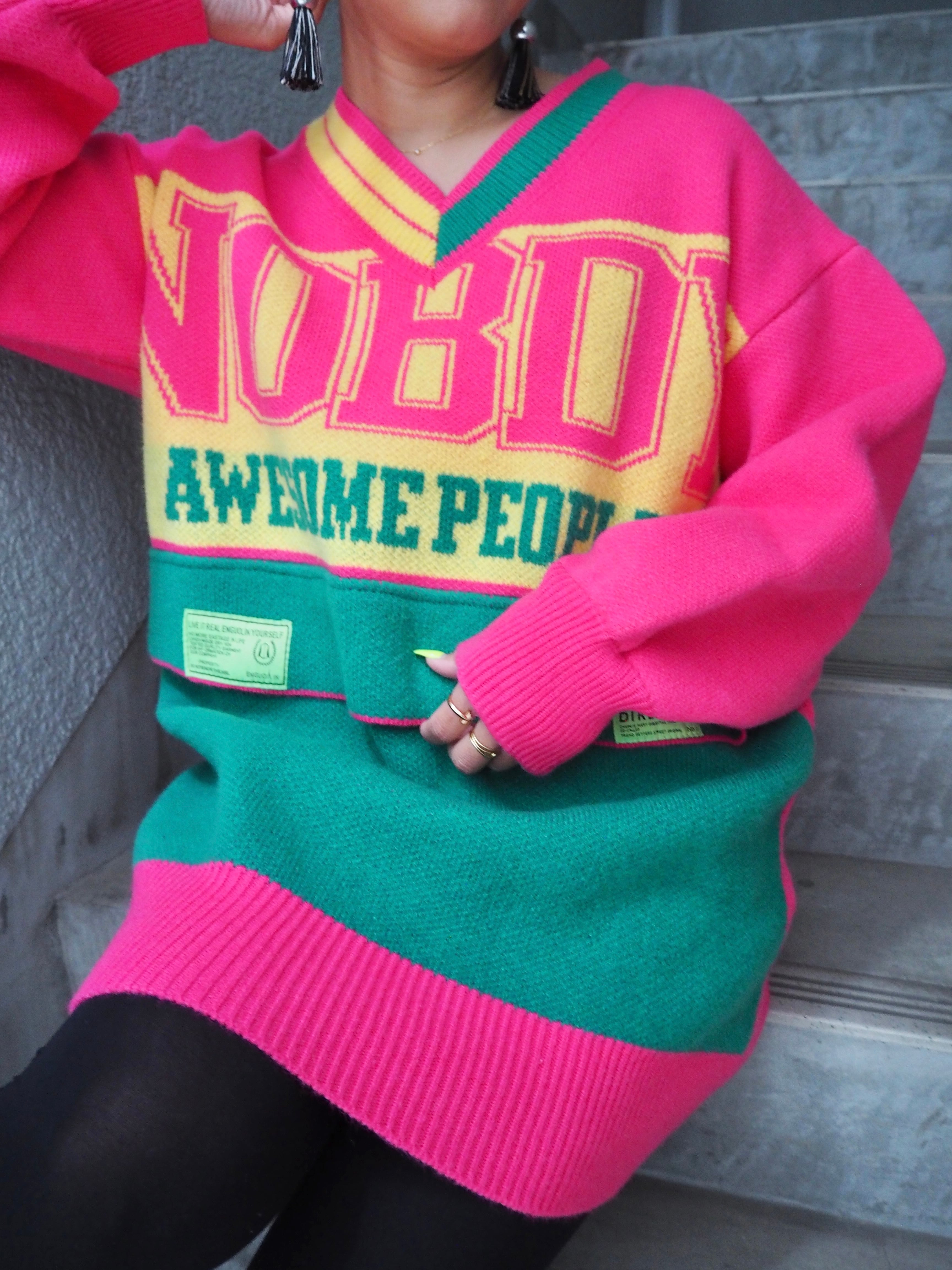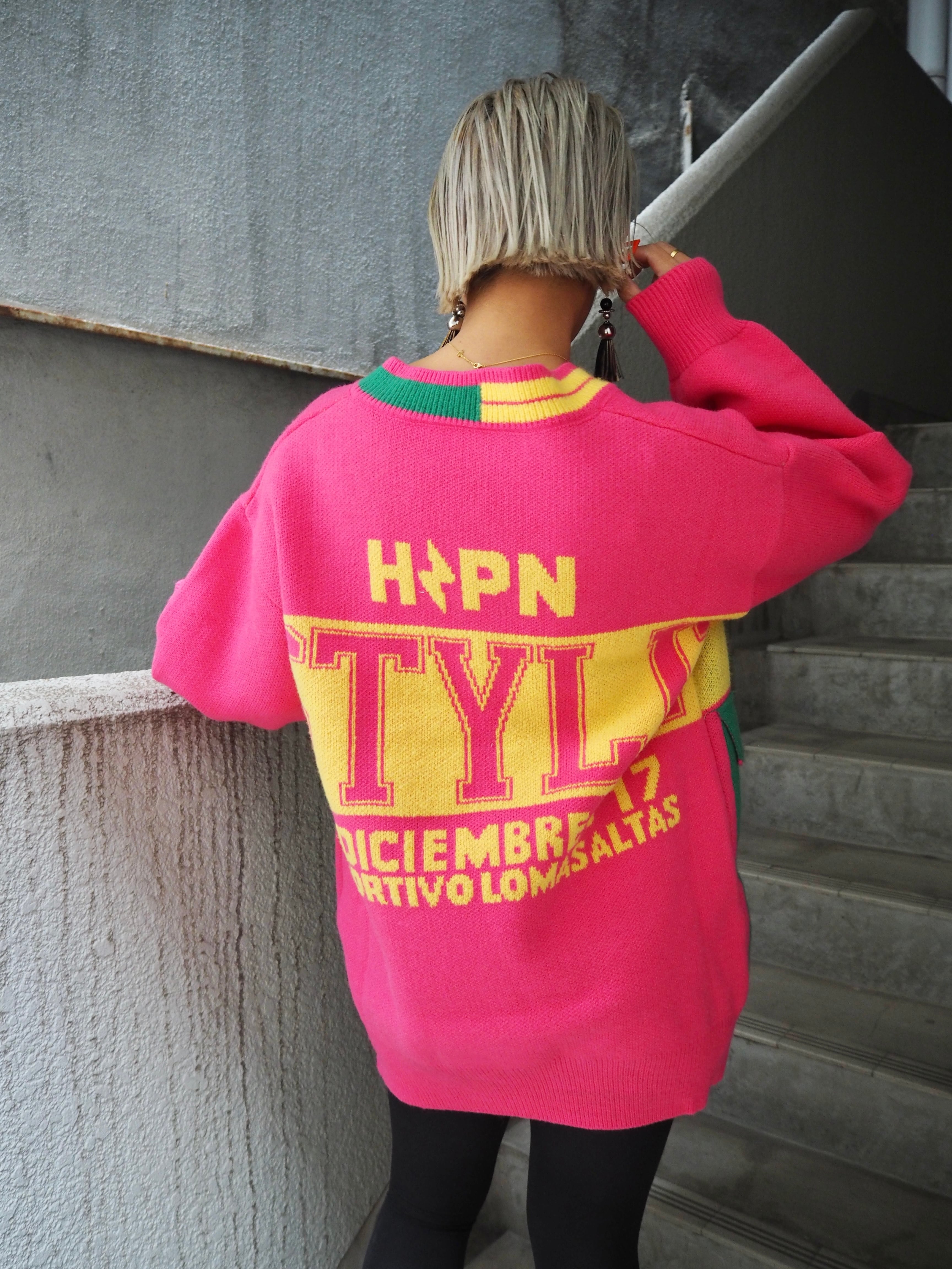 ビビットなカラーが人目を惹くこと間違いなしなデザインニット♪