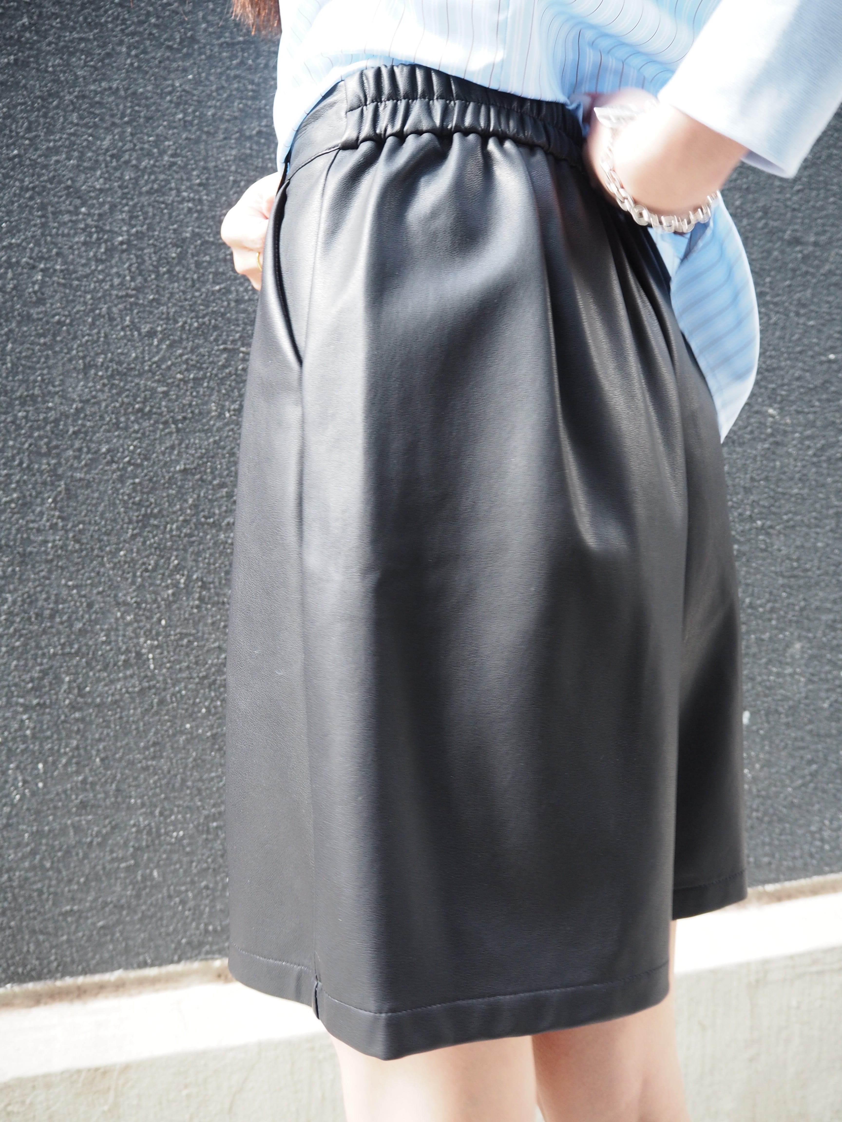 eco leather half pants パンツ エコレザー 合皮 ゴムウエスト ブラック 黒