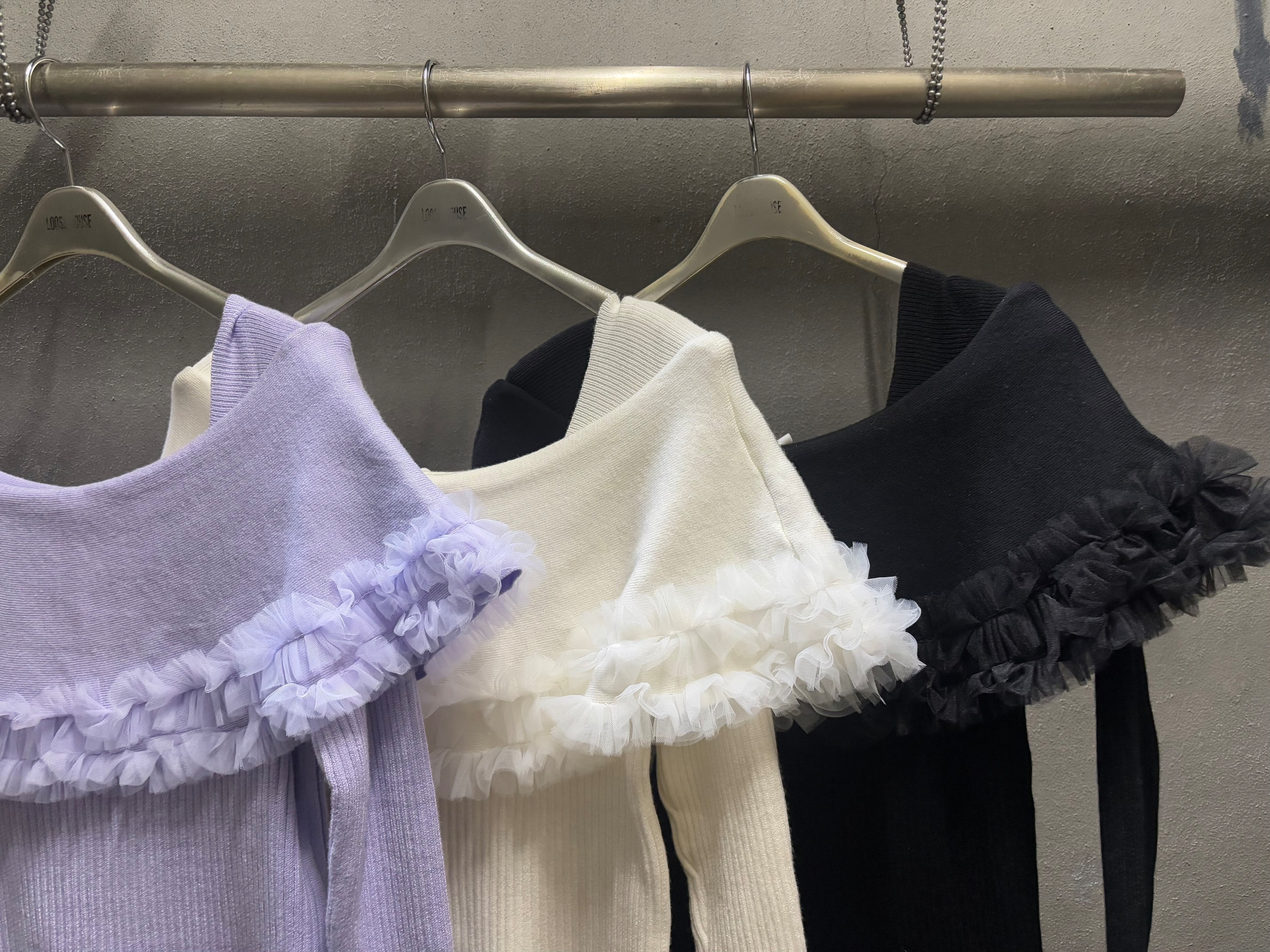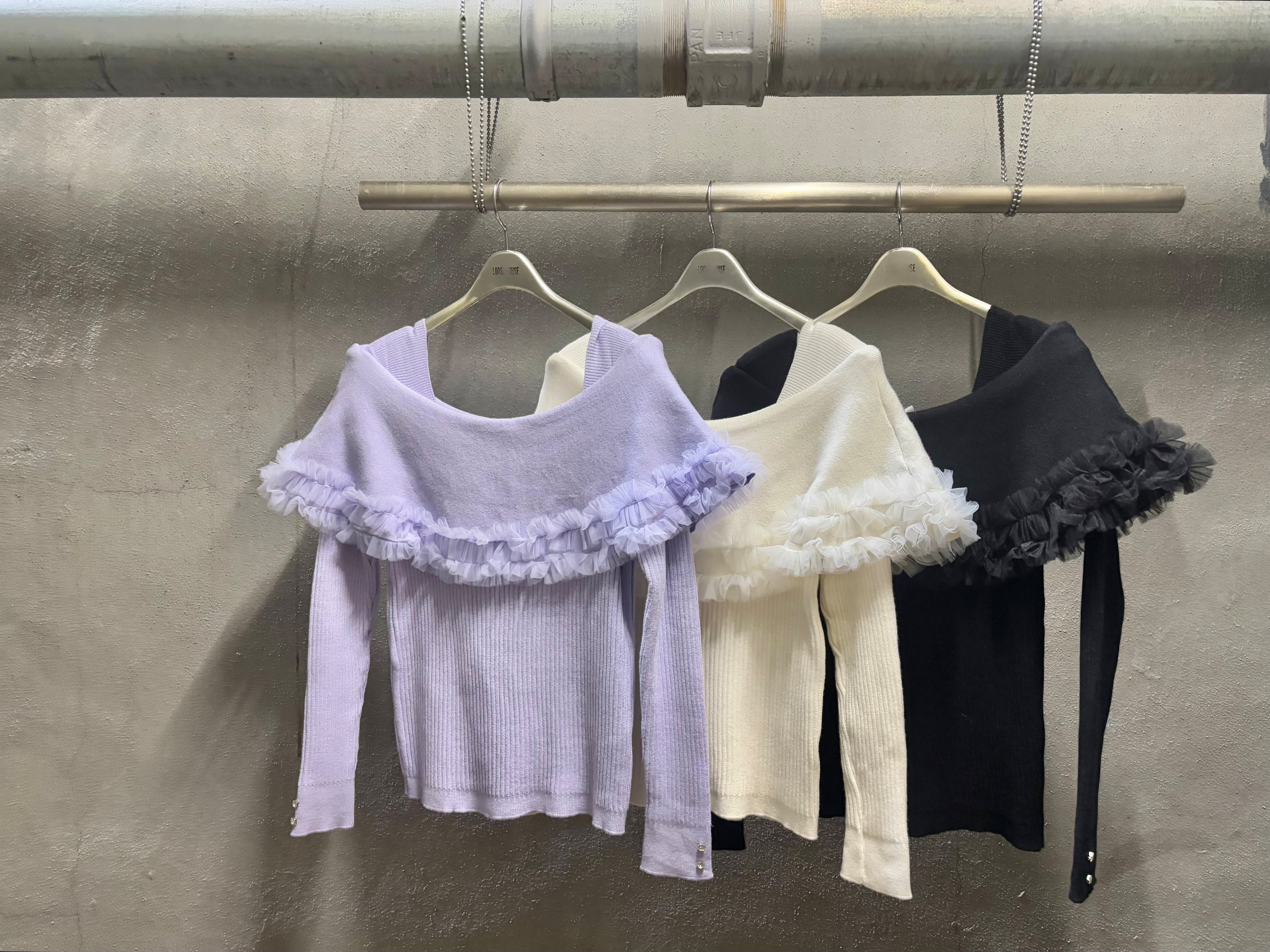 mini frill cape shoulder design knit tops