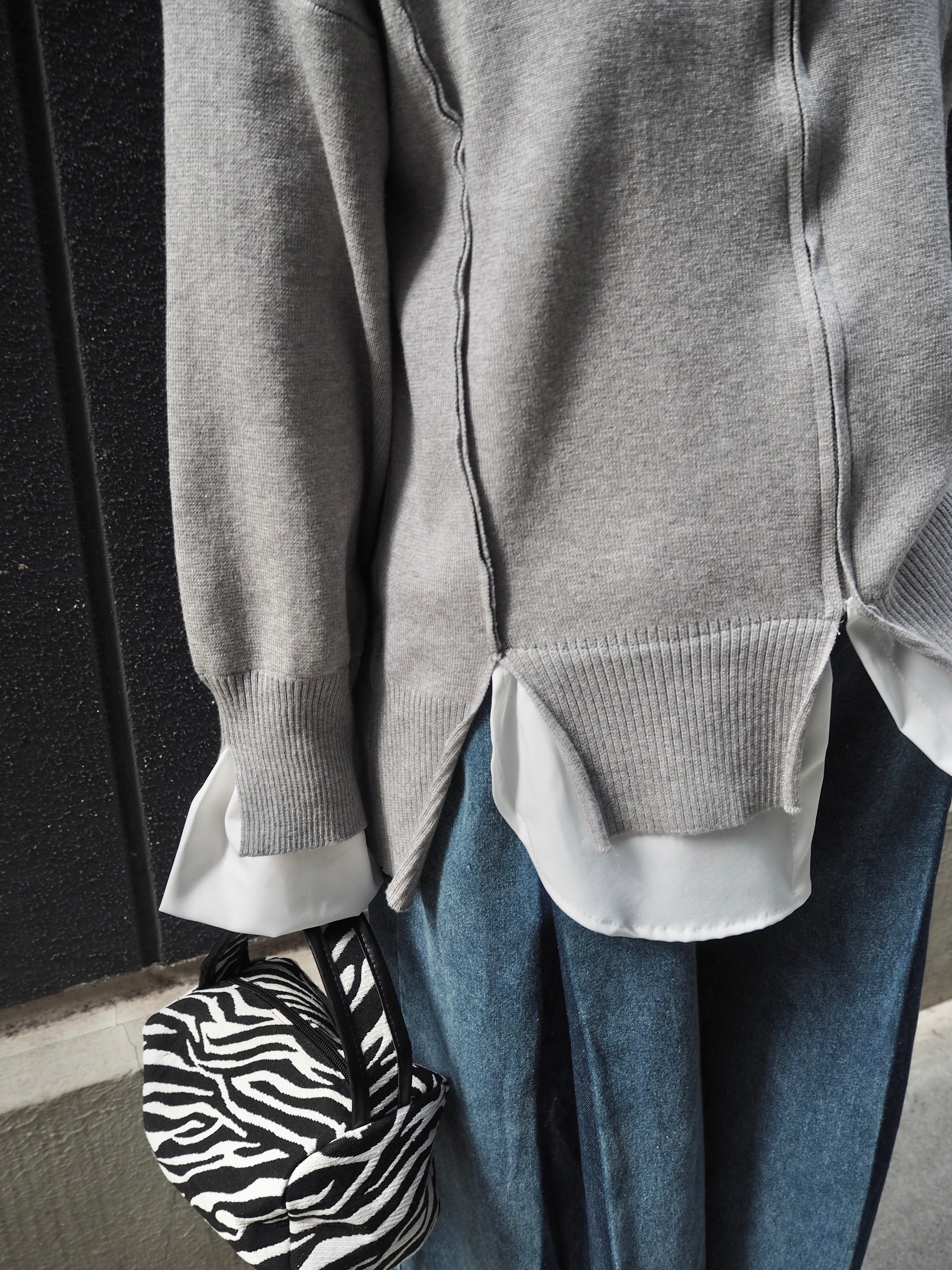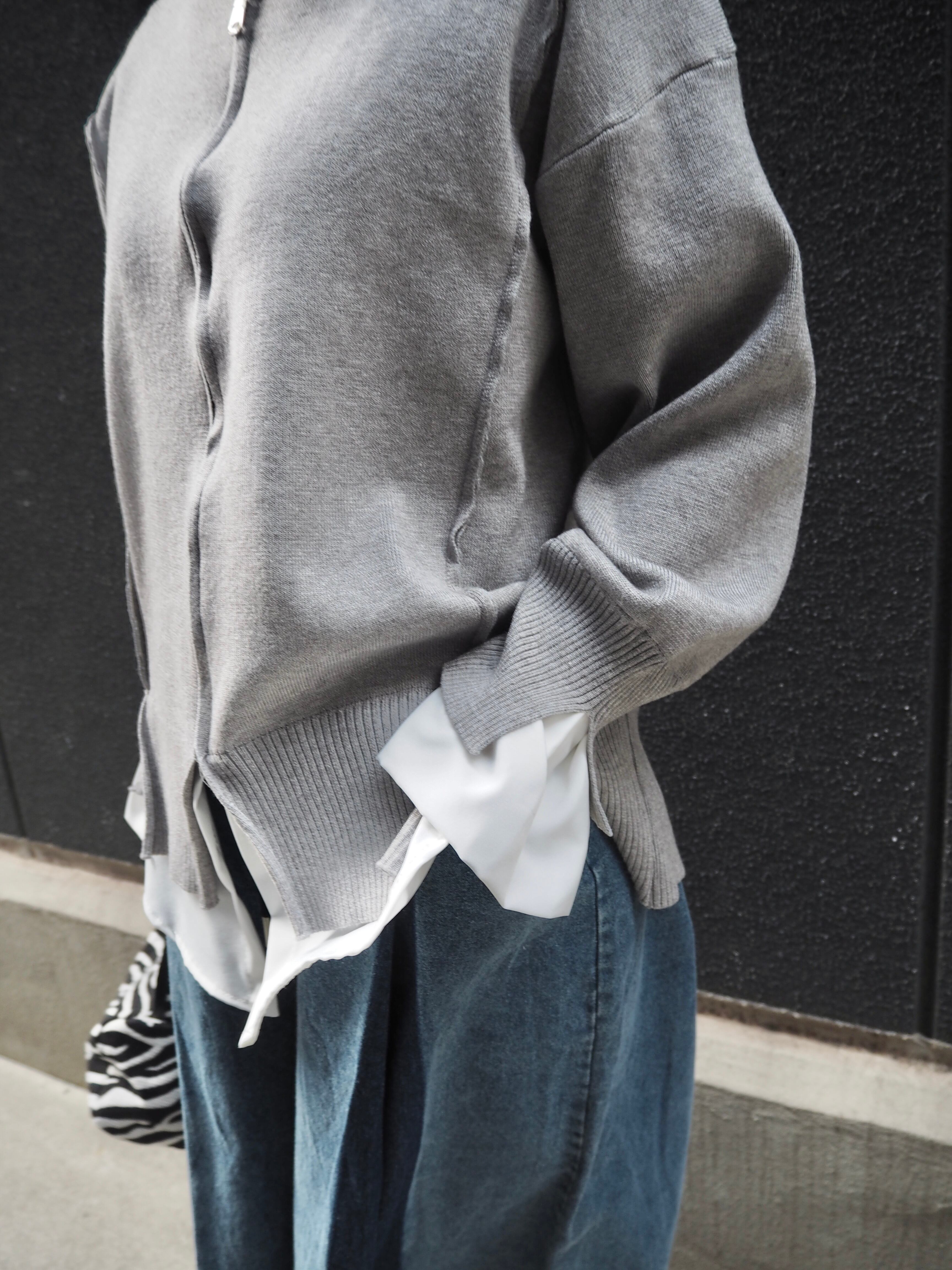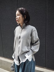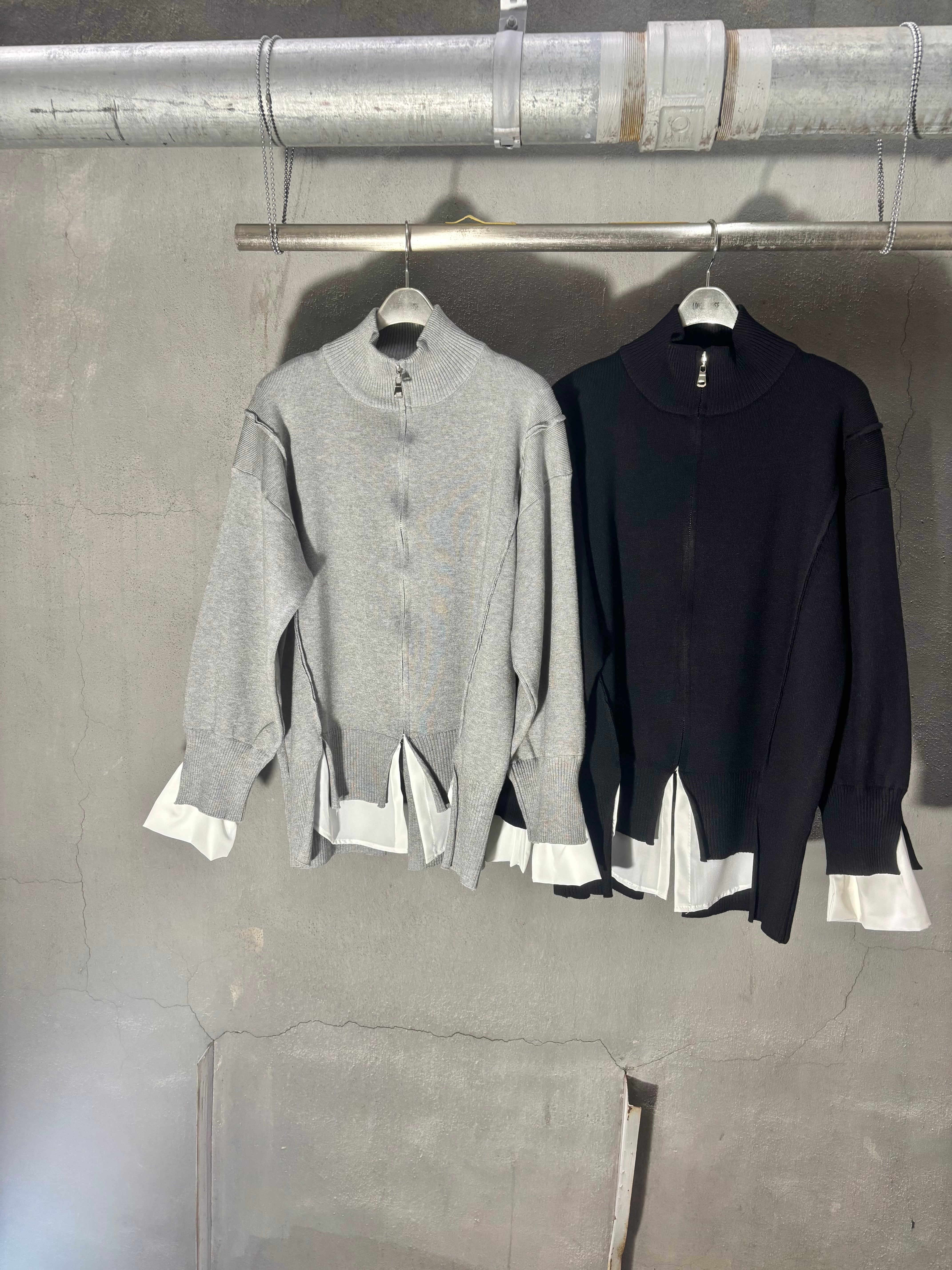 different fabrics docking design zip up jacket tops トップス ジャケット ニット シャツ ドッキング デザイン バイカラー 羽織