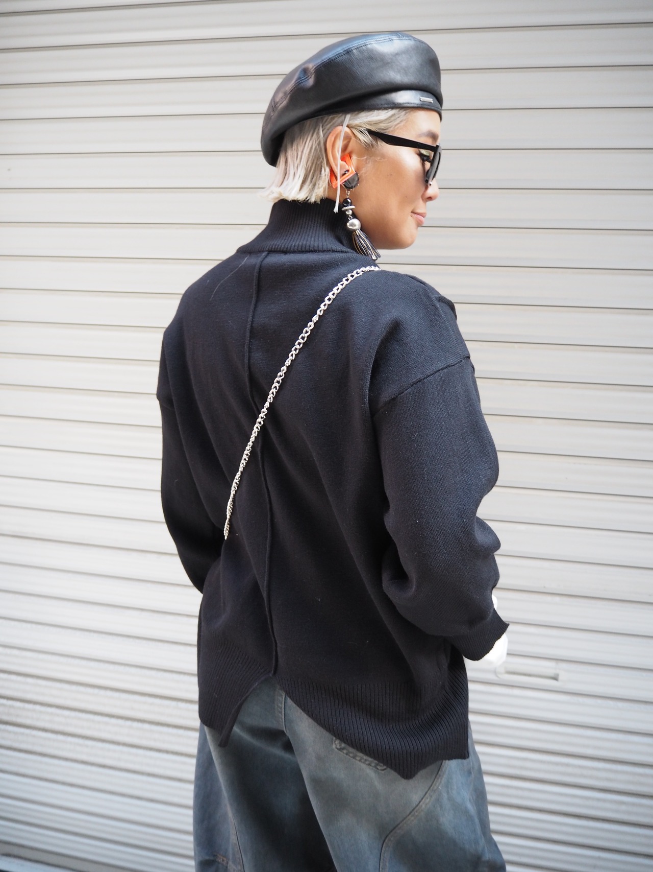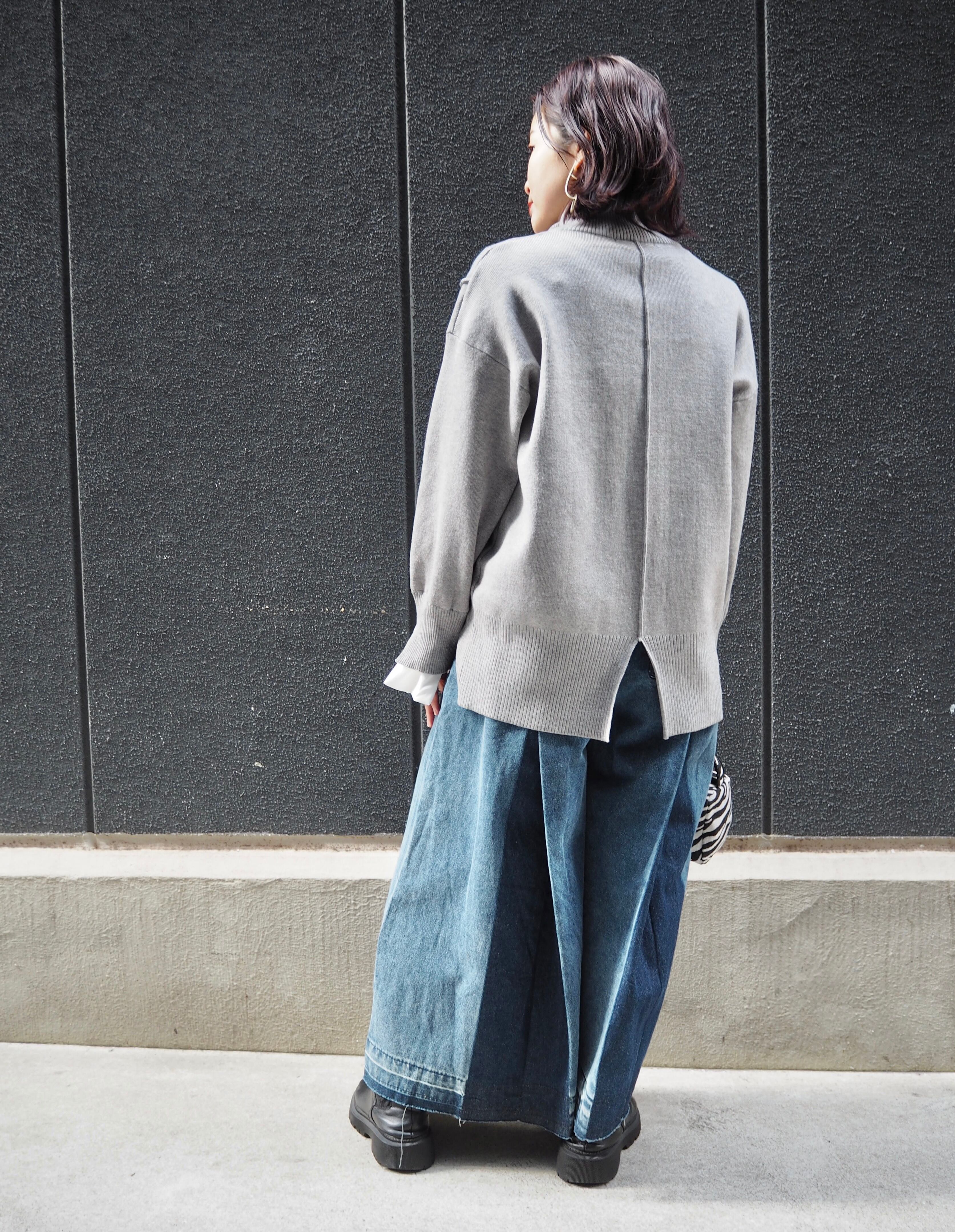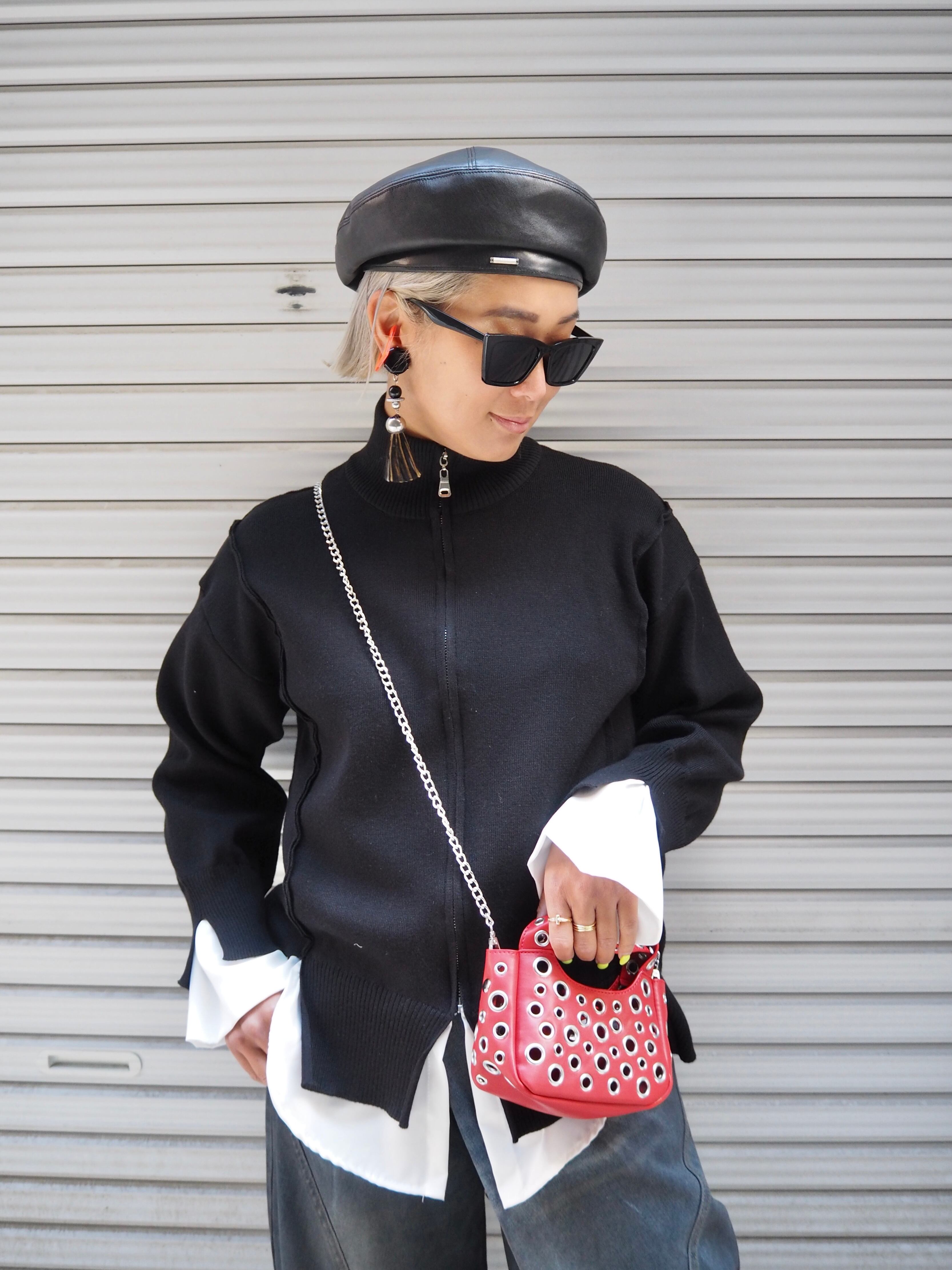 ニットと異素材を組み合わせたスタイリッシュな一着で、デイリールックにぴったり◎