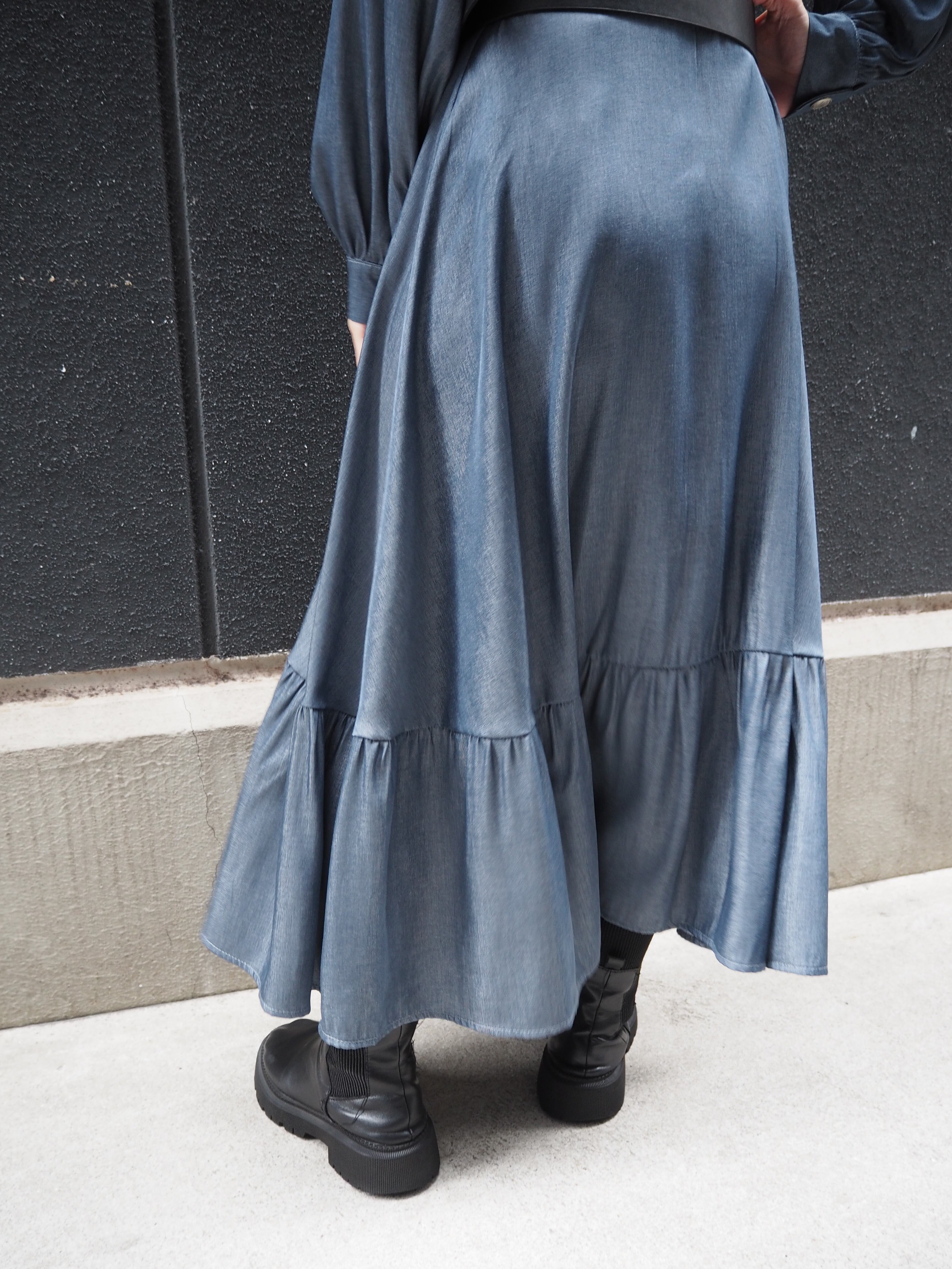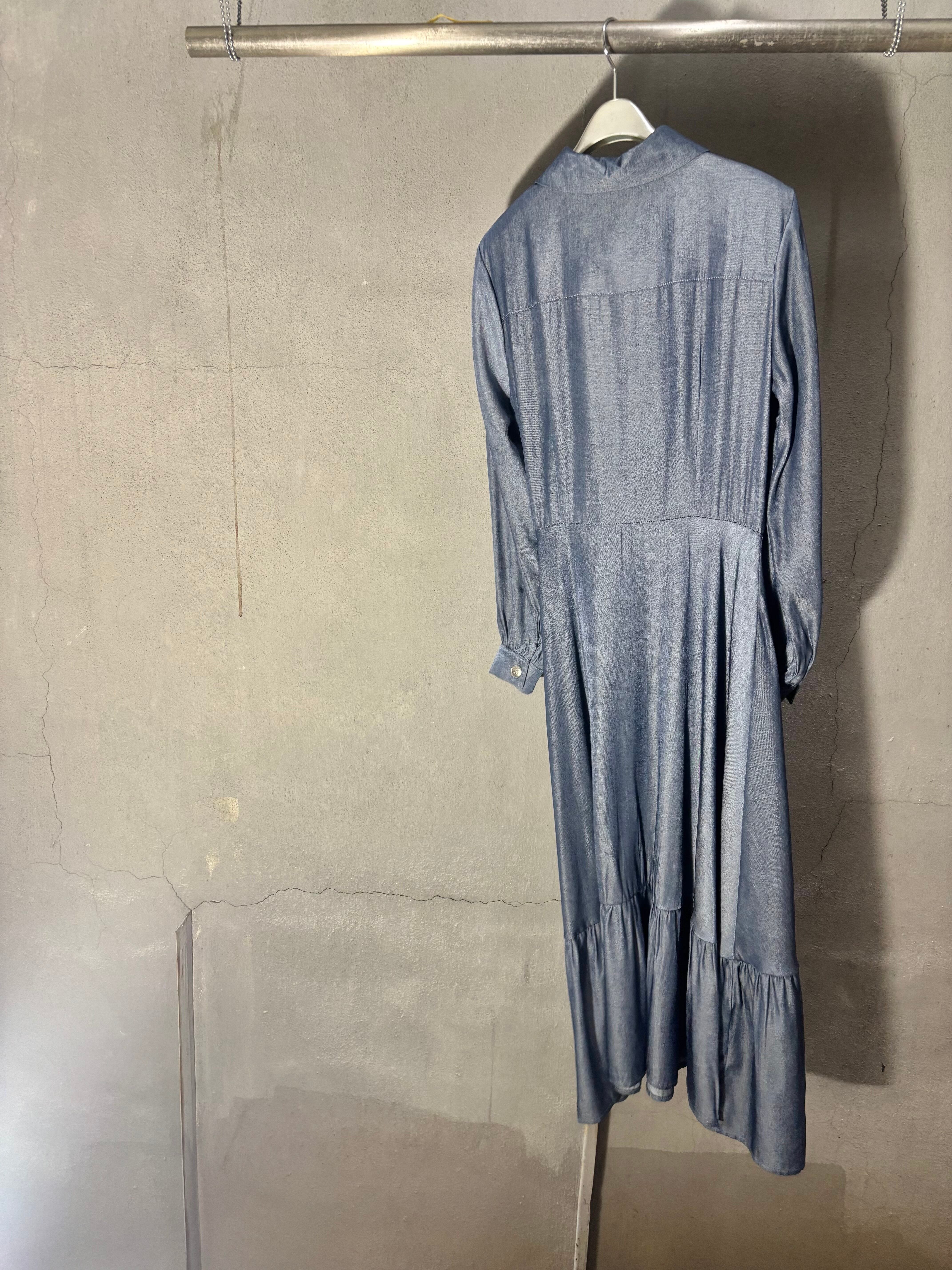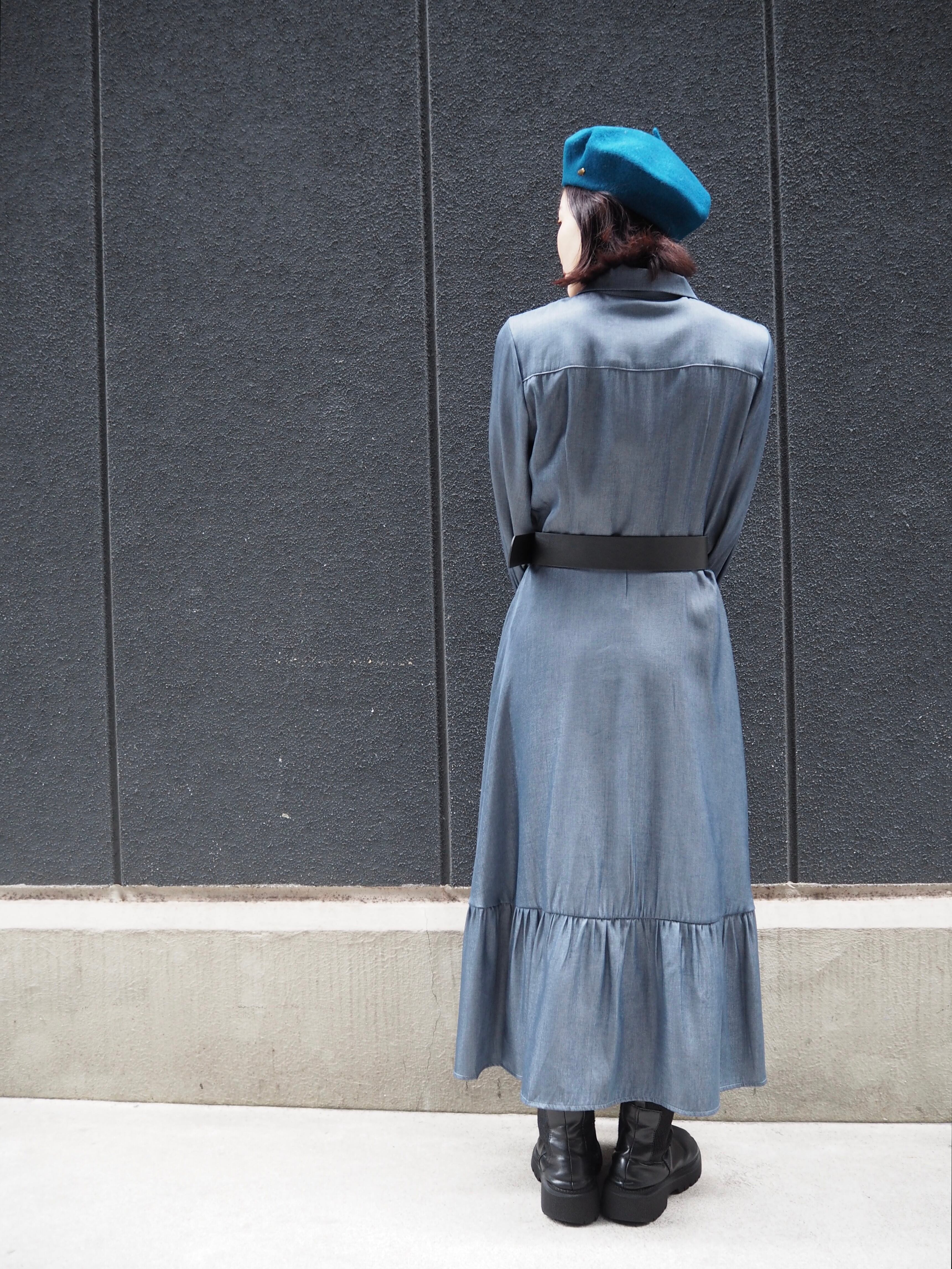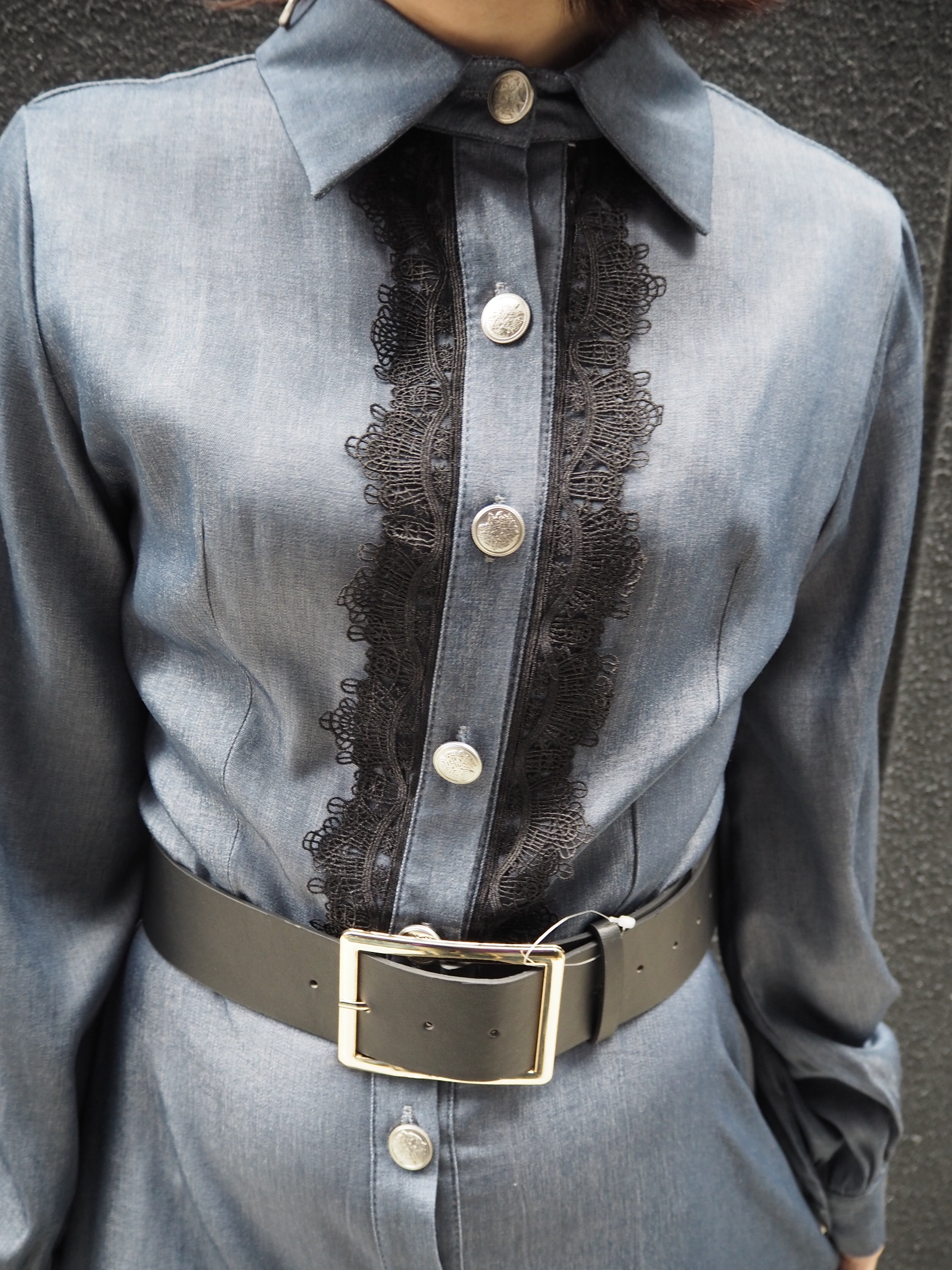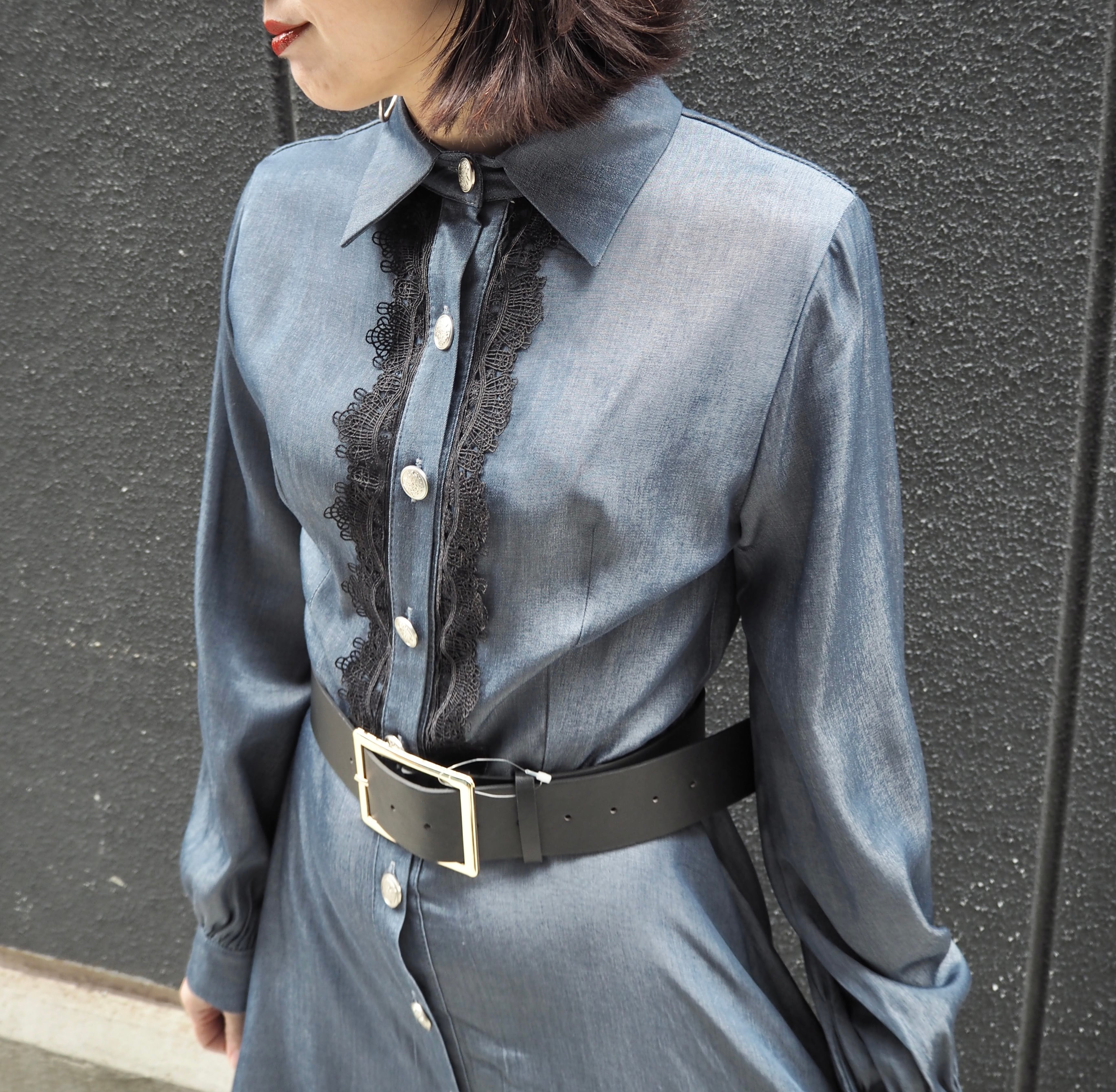 rayon touch lace point design denim one-piece ワンピース ワンピ シャツカラー 襟付き レース ベルトセット レーヨン 前開き