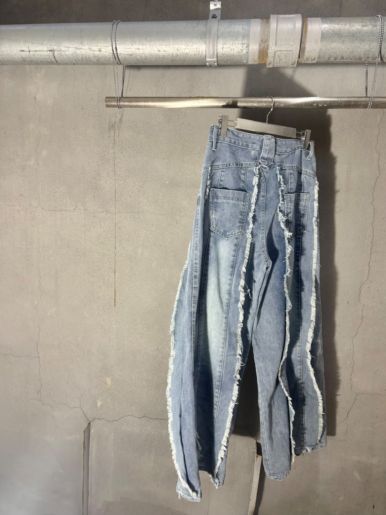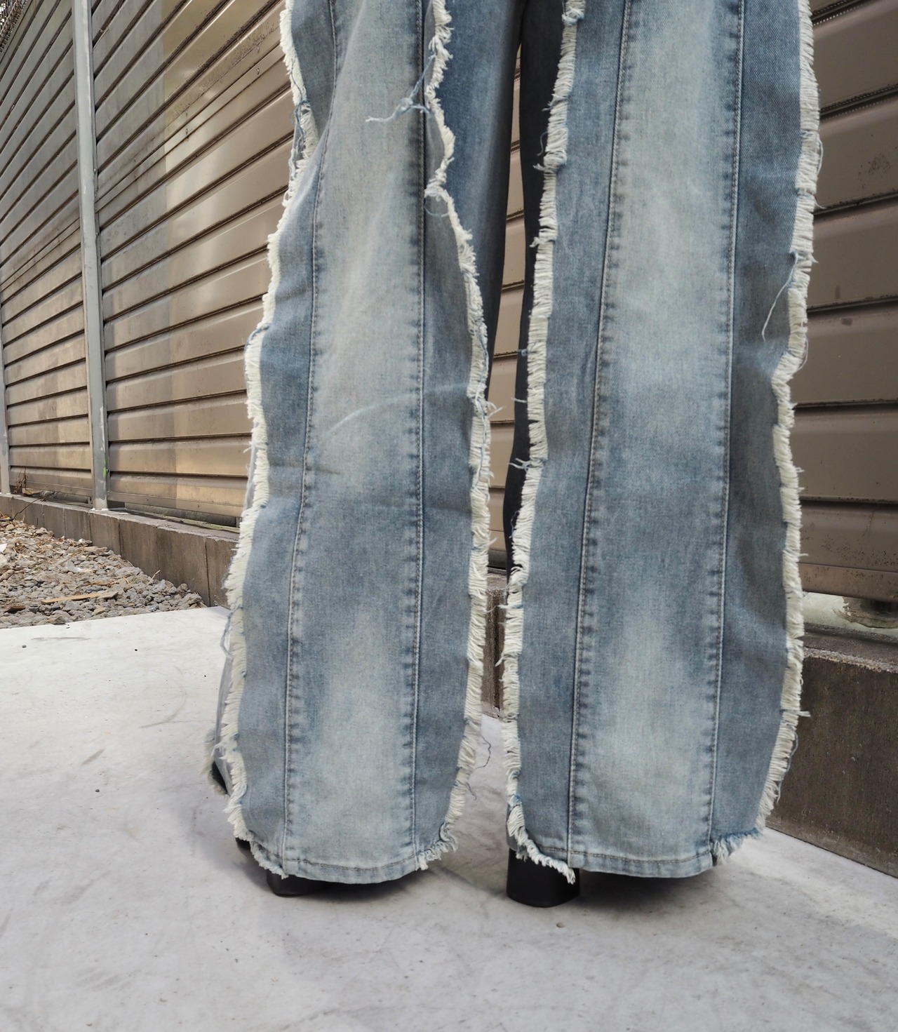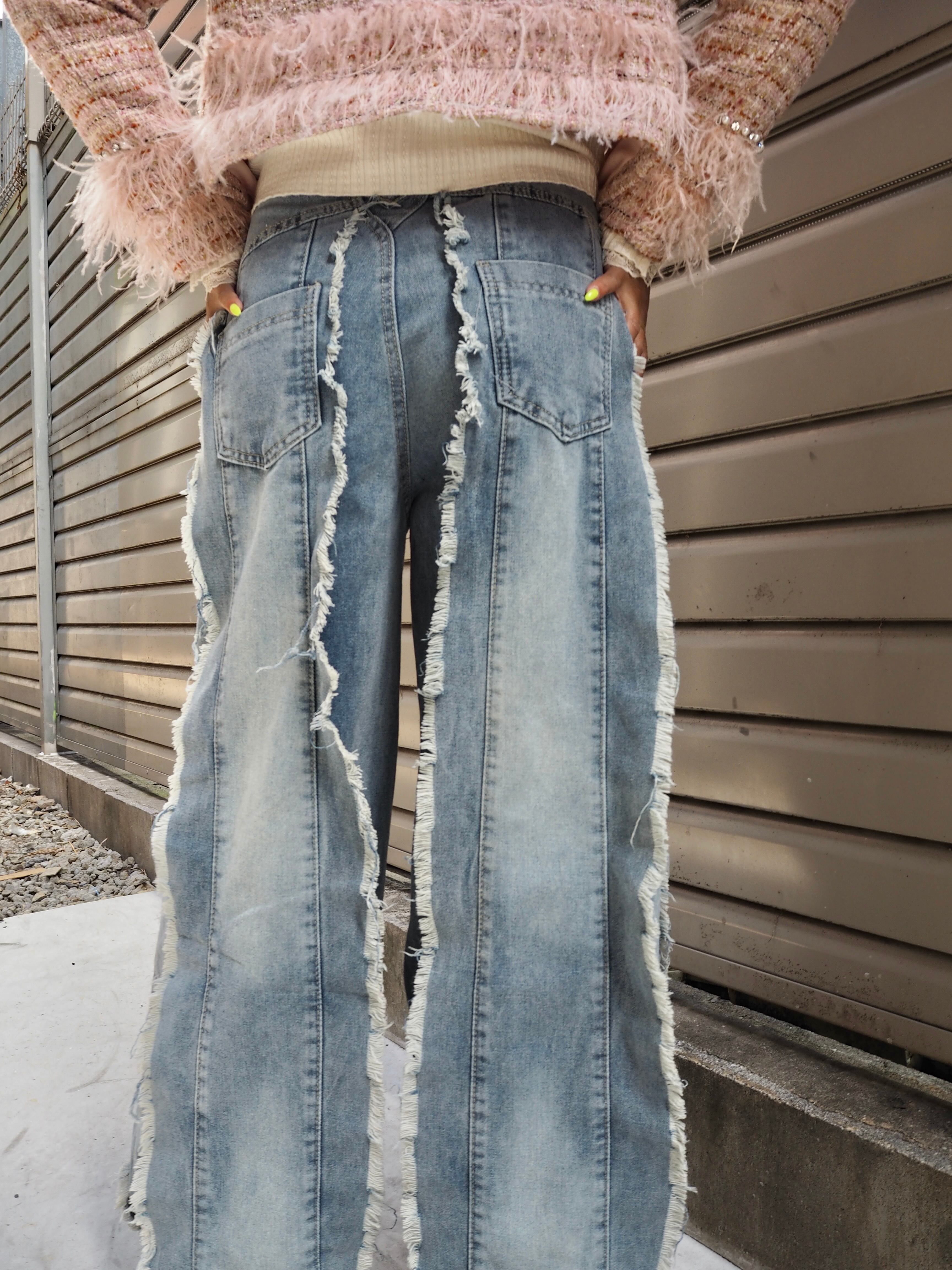 fringe change design denim pants パンツ デニム フリンジ ワイド カジュアル