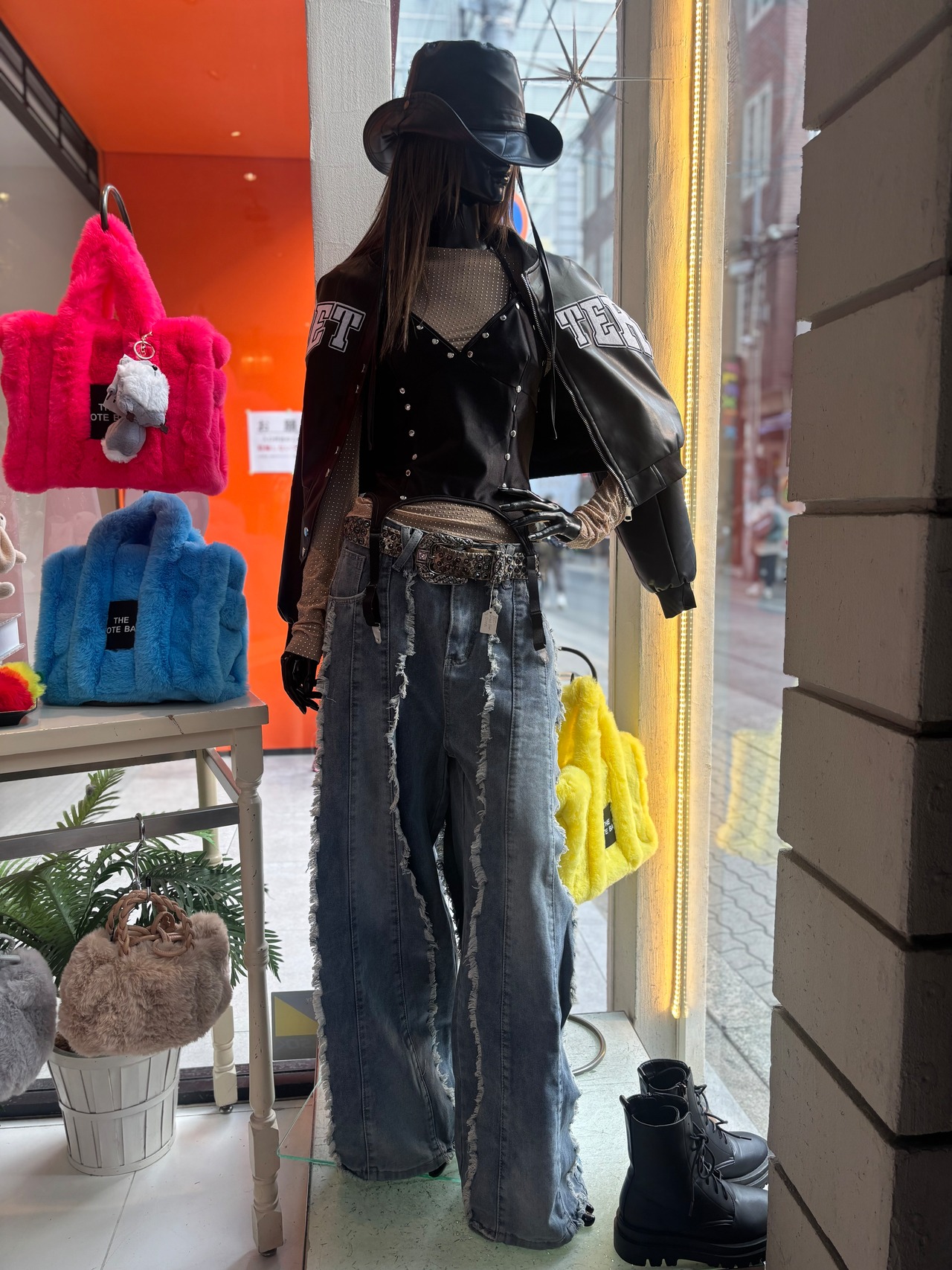 スタッズの輝きがさりげなく個性的な印象を与え、普段使いはもちろん