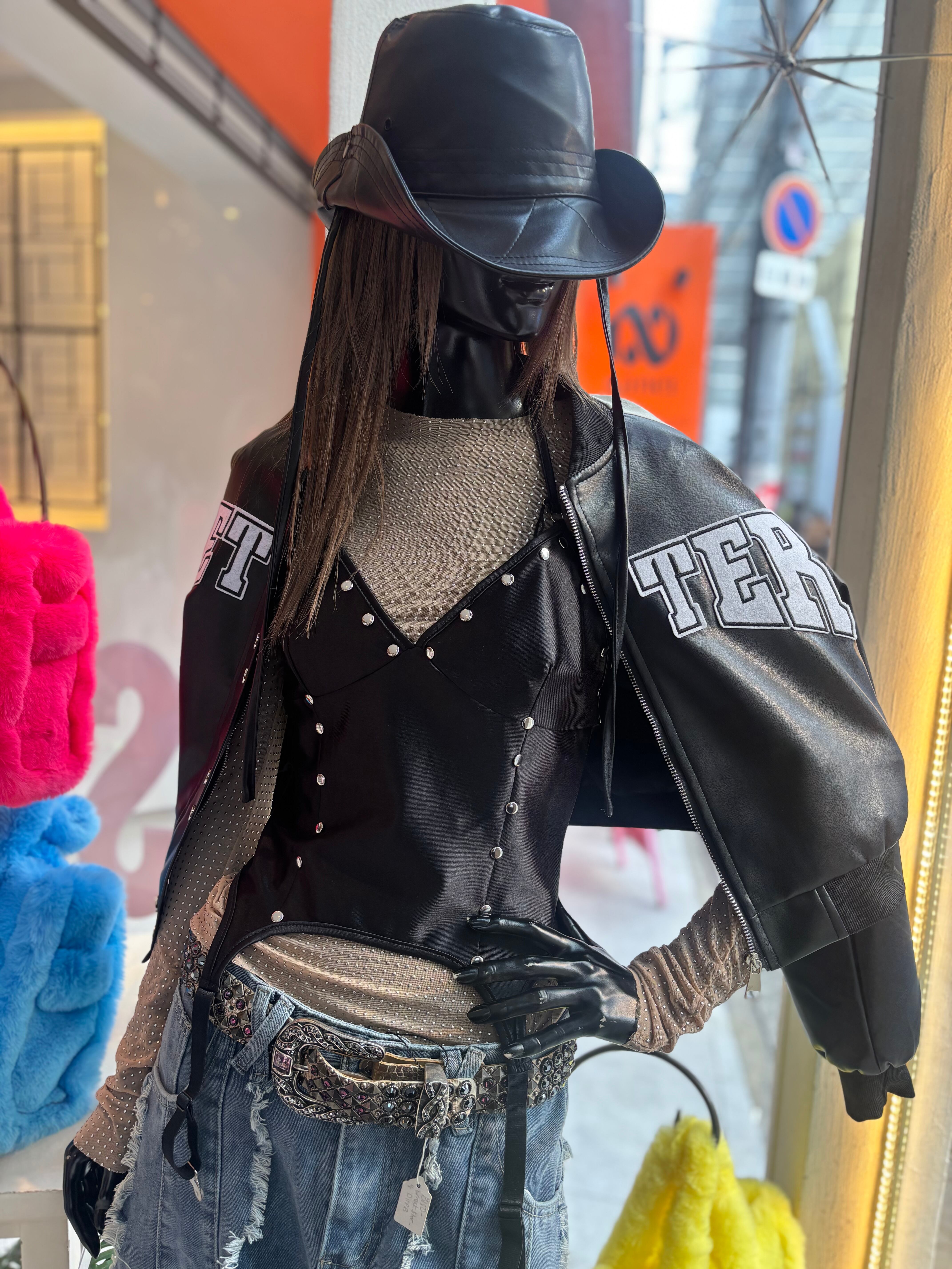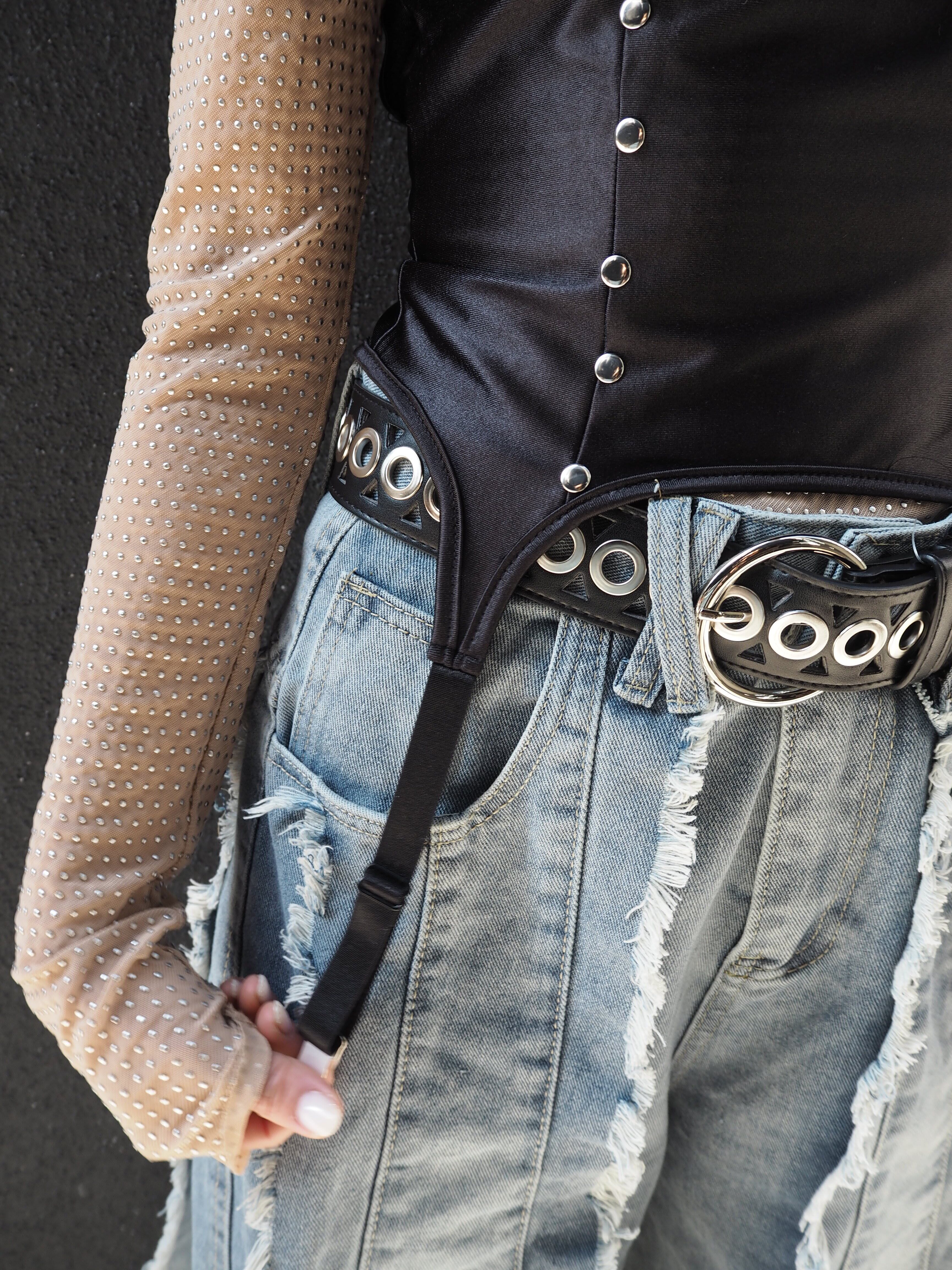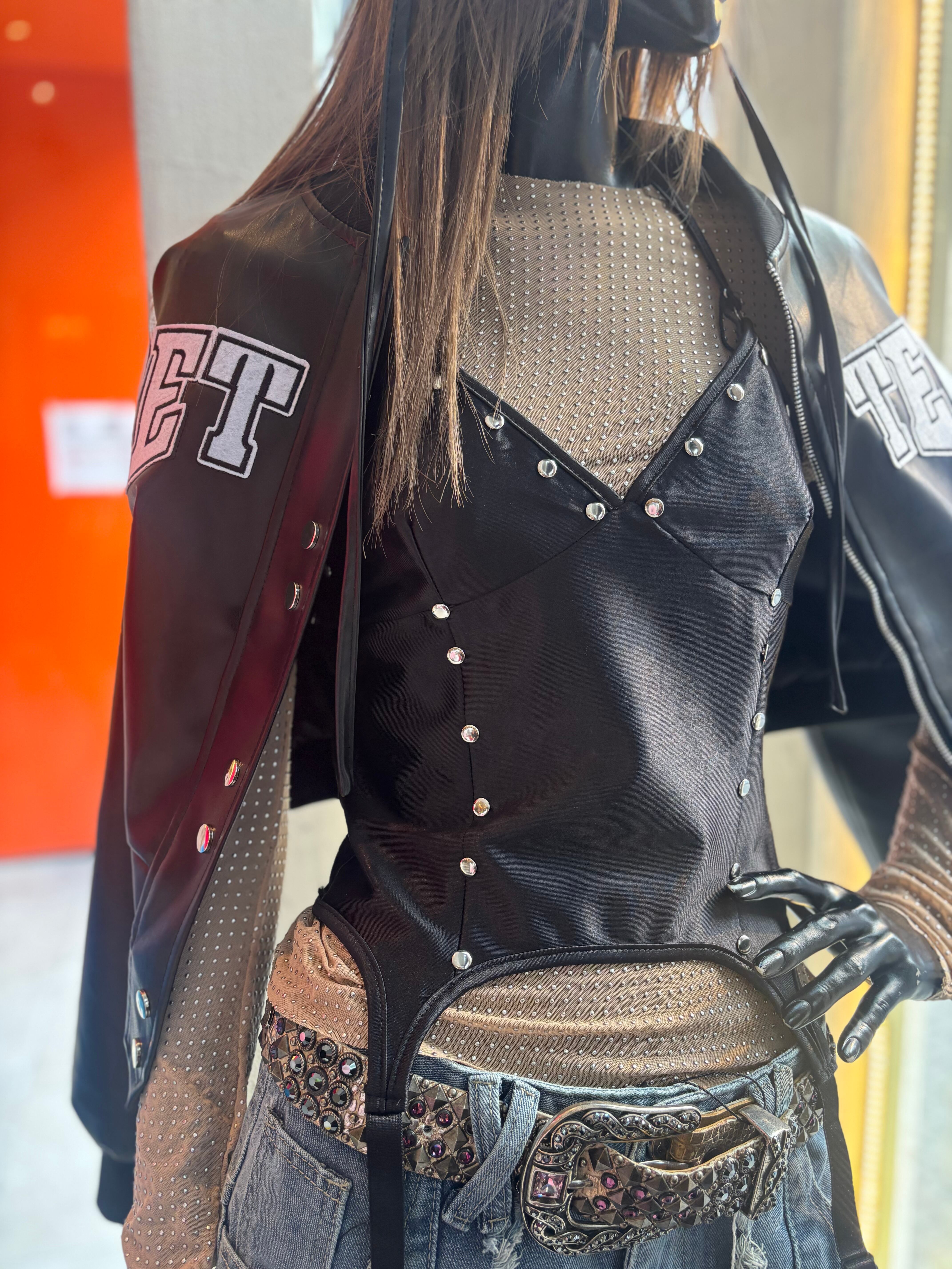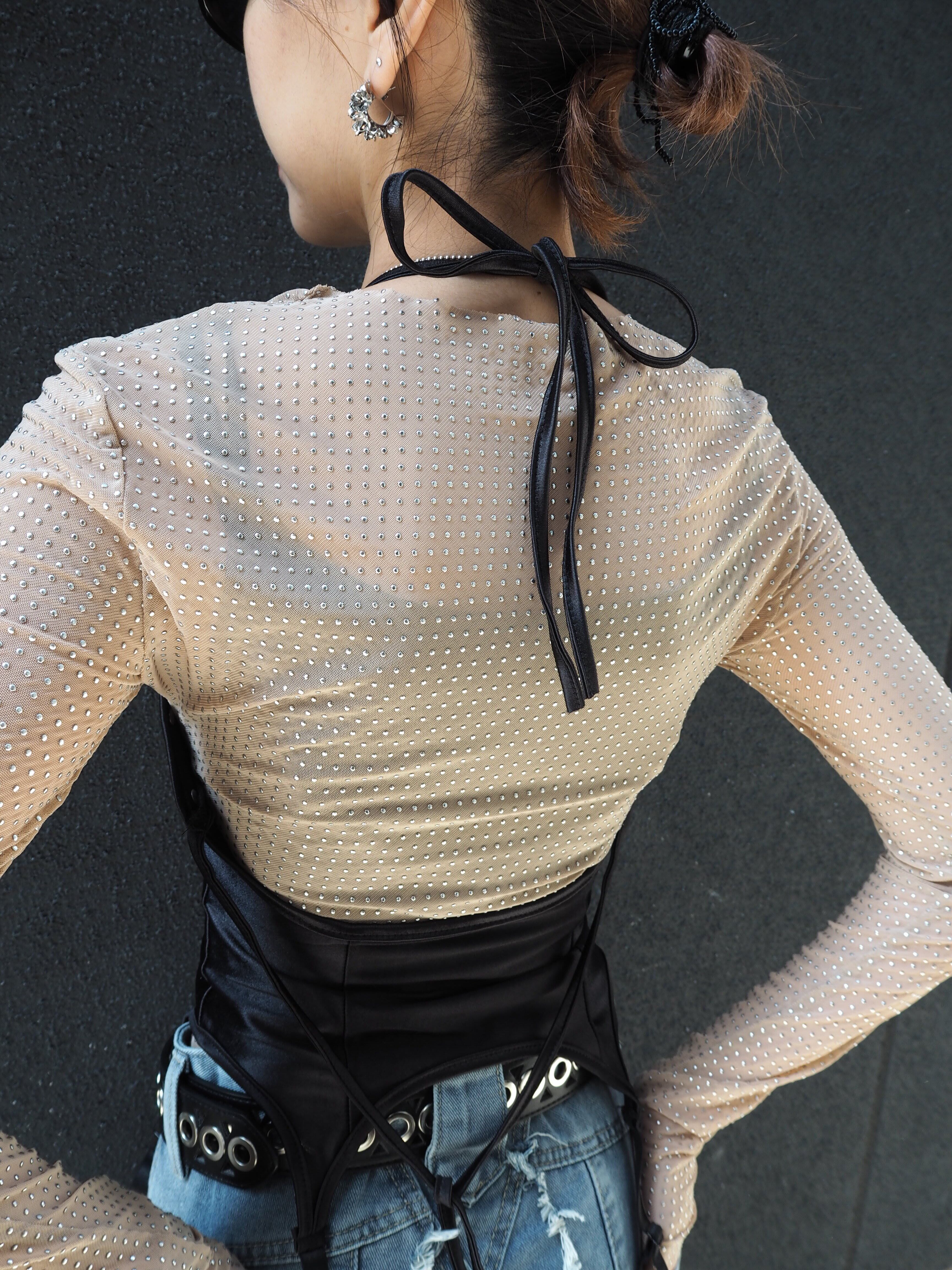 silver studs holder neck design camisole キャミソール キャミ スタッズ シルバー ホルターネック 黒 ブラック 重ね着 レイヤード